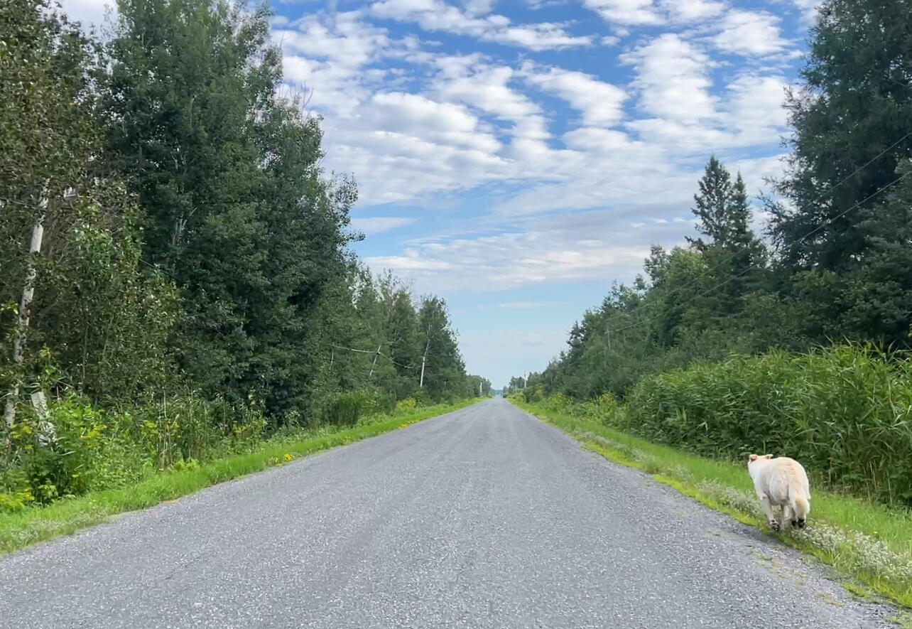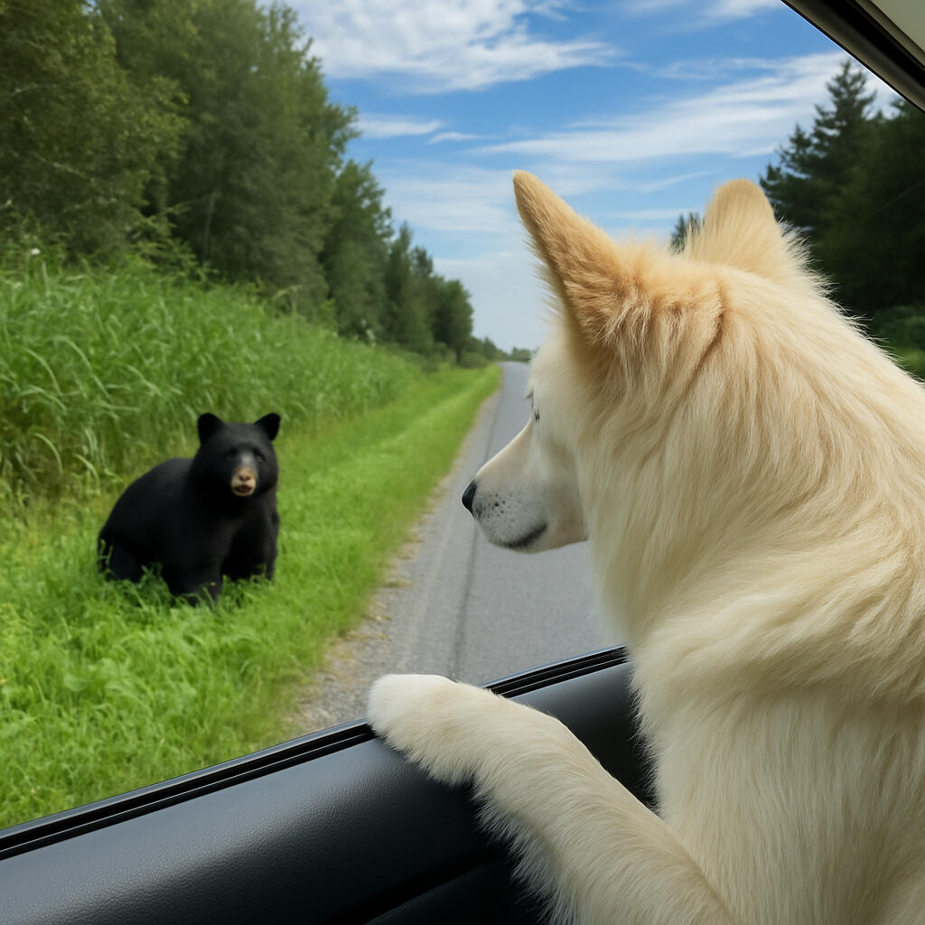 It was on this very road — coming down from the top of the hill, heading back from town after another grocery run — about a block up from the Bear Pass photo with Laska.Laska’s nose stopped him dead in his tracks.